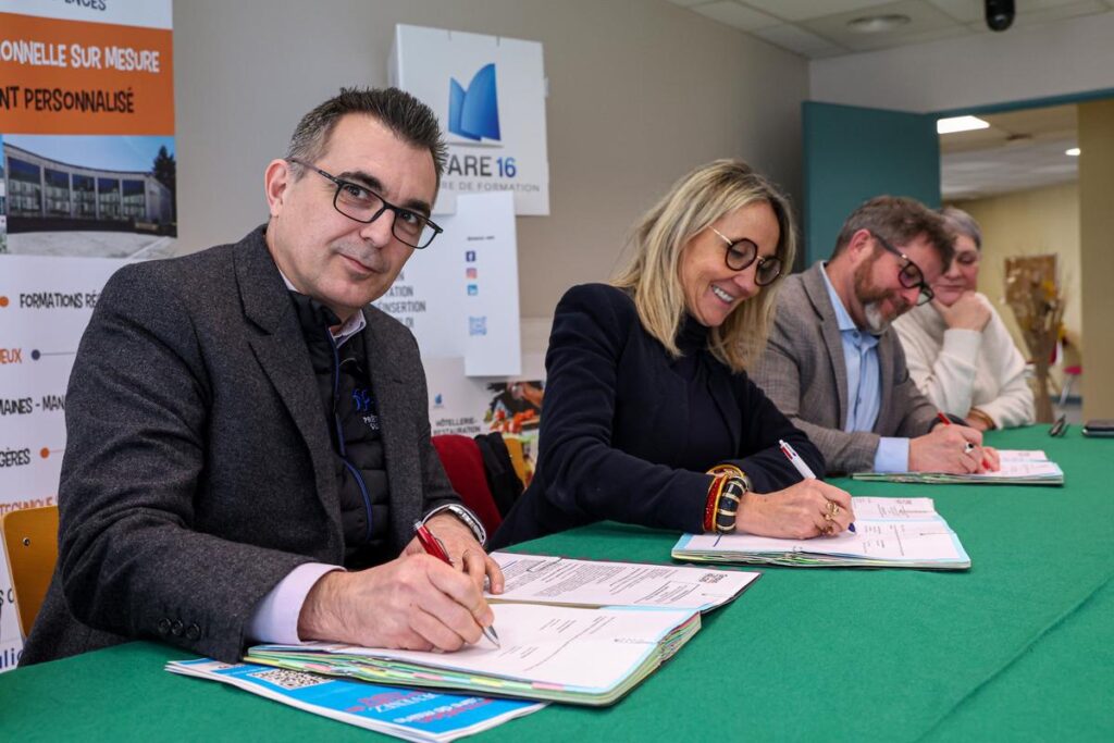 Ce lundi, Nelly Vergez, vice-présidente du Département chargée de l’Education et de l’Enseignement supérieur a signé une convention avec l’organisme AAISC et Fare 16. Ces deux structures proposeront à partir de juin ces formations de secrétaire de mairie qui existe en Charente depuis 2020 et ont formé 102 stagiaires sous la houlette d’Élisabeth Mouchague, responsable du pôle formation continue du campus.